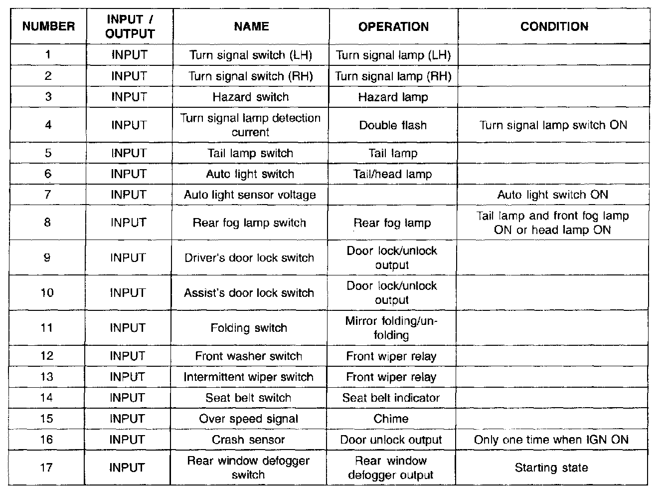 INPUT SIGNAL ACTUATION TEST
