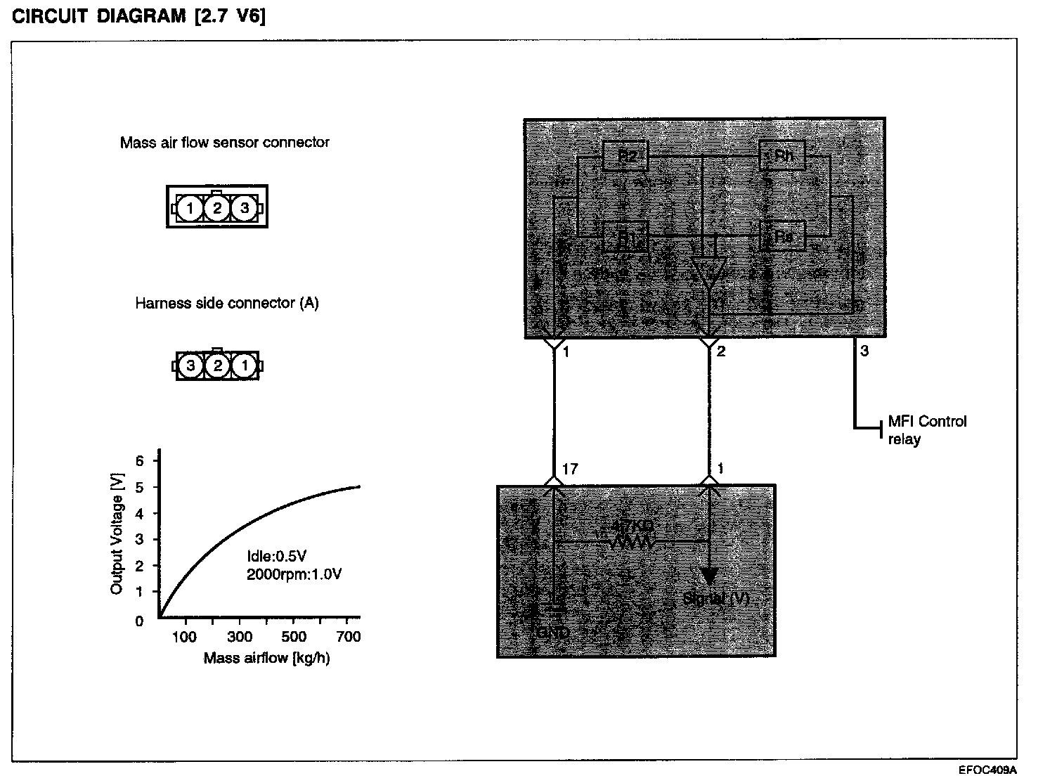 Home >> Hyundai >> 2003 >> Tiburon V6-2.7L >> Repair and Diagnosis >> Powertrain Management >> Computers and Control Systems >> Air Flow Meter/Sensor >> Testing and Inspection >> Component Tests and General Diagnostics