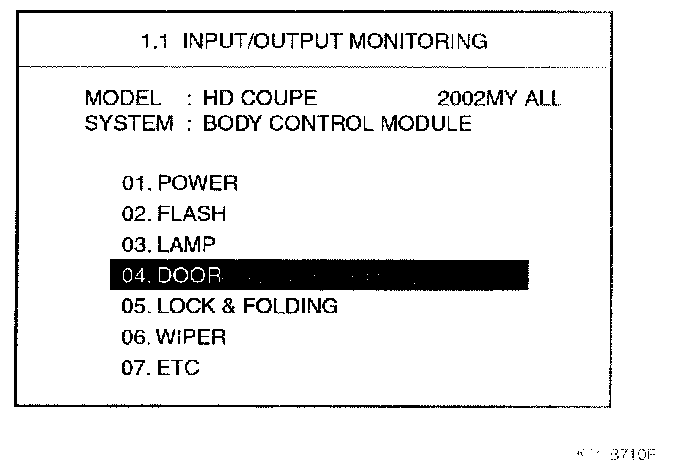 Select "04. DOOR" and press [ENTER]. Then the following screen will be displayed.
