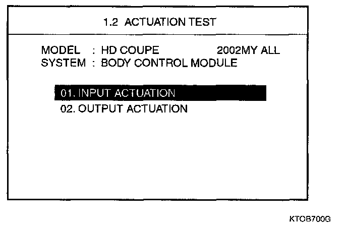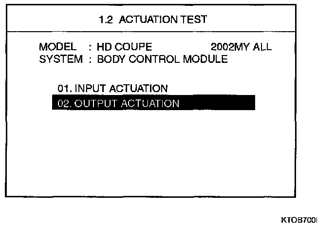 2. Select "02.0UTPUT ACTUATION" and press [ENTER].