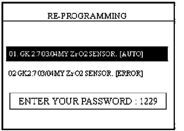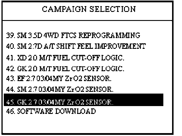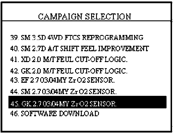 6. Select option "45. GK 2.7 03/04 MY Zr 02 SENSOR." and press ENTER.