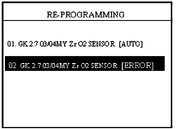 In the event that option "01. GK 2.7 03/04 MY Zr 02 SENSOR. [AUTO]" fails to download the new ECM program, option "02. GK 2.7 03/04 MY Zr 02 SENSOR. [ERROR]" must be used.