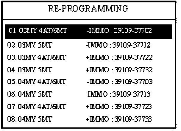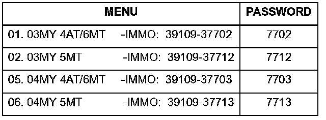 6. Select the correct password for the manual update mode which is correct for the vehicle specification by referring to the chart. Then press ENTER.