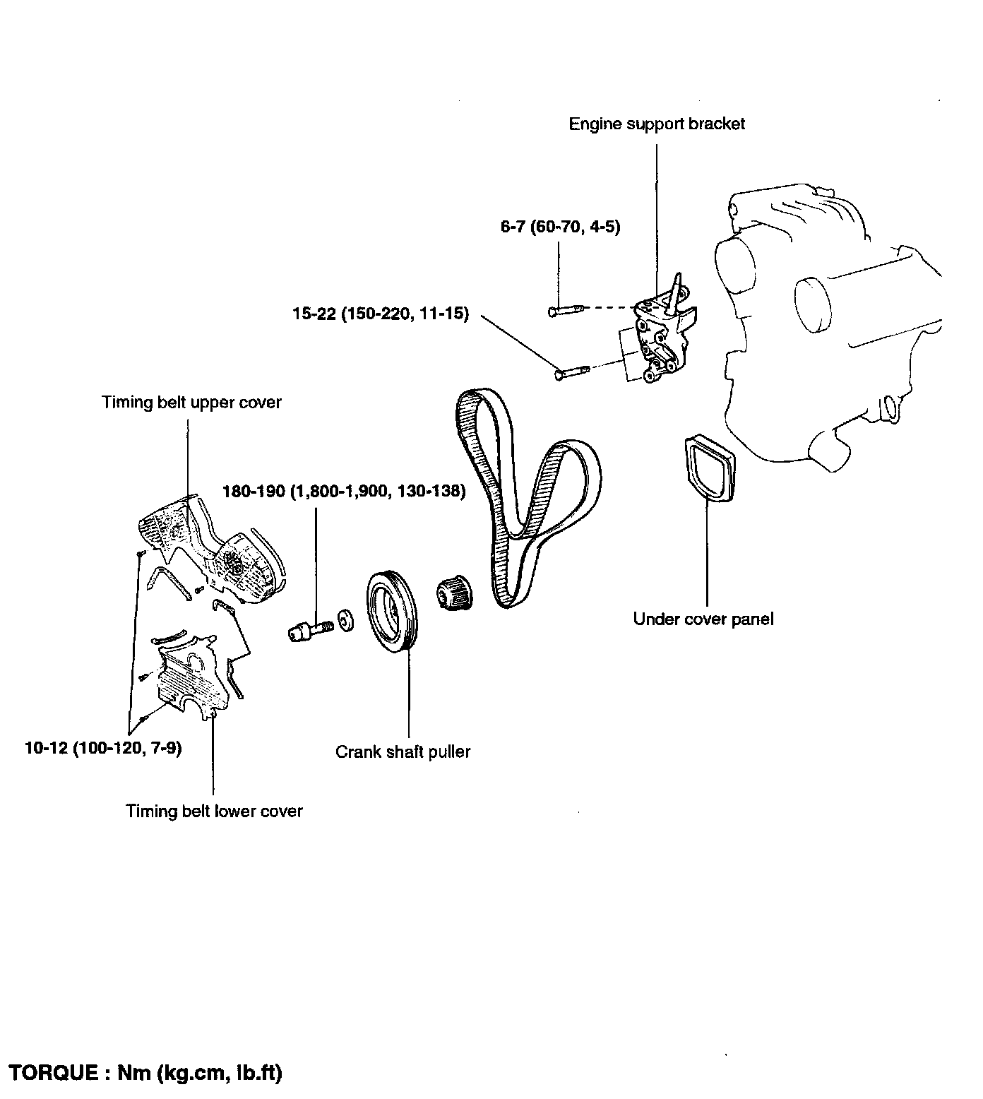 Timing belt tensioner arm Fixed bolt 35 - 55 Nm (25 - 40 ft. lbs.)
