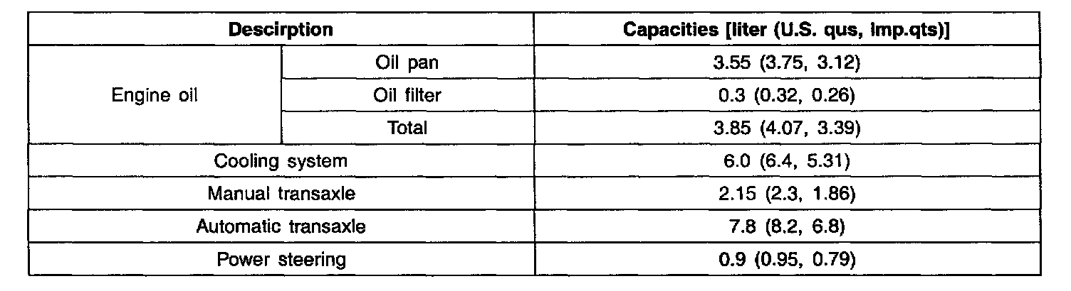 General Capacities Specifications