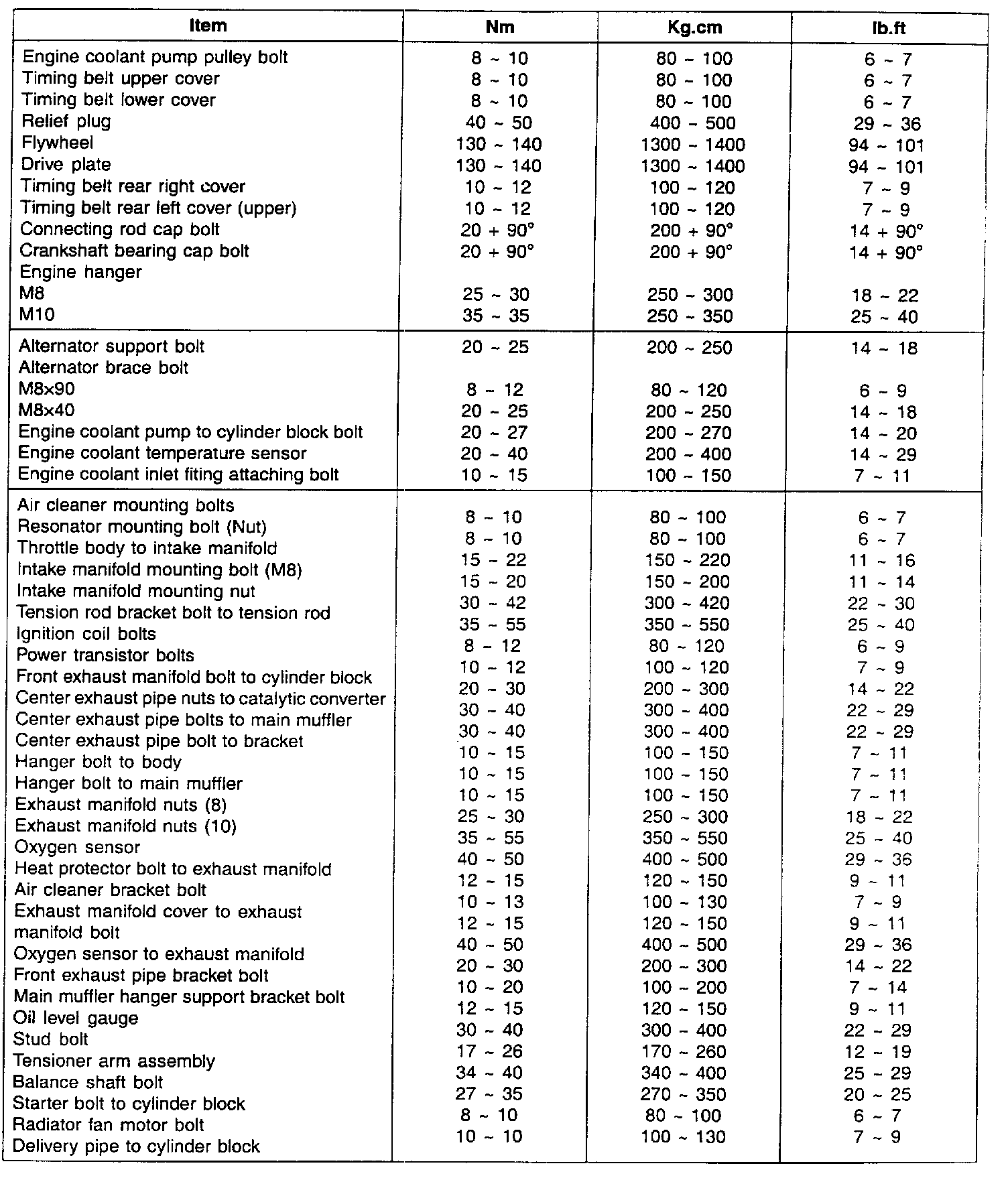 Tightening Torque Specifications