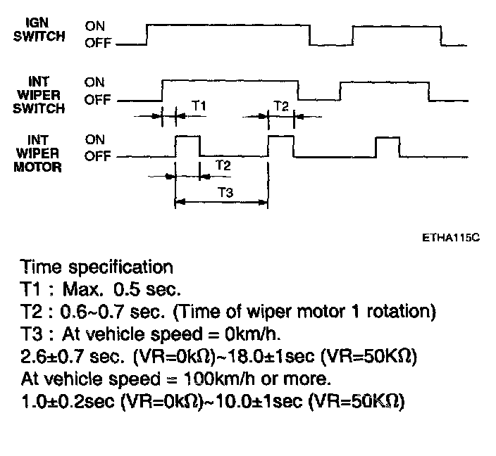 When Ignition 2 is on and the wiper switch is in the intermittent position, the wiper shall operate with speed dependent intermittent time. A single wipe is achieved by driving the wiper relay until the park switch is able to take over unless the dwell time between wipes is too short. In this case it would be on all the time. This avoids unnecessary clicking of the wiper relay.
