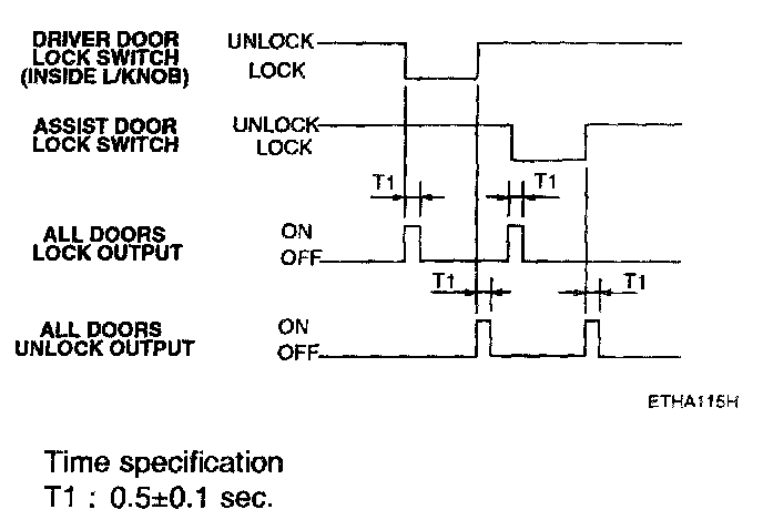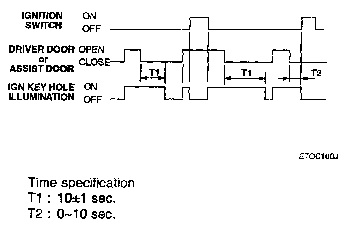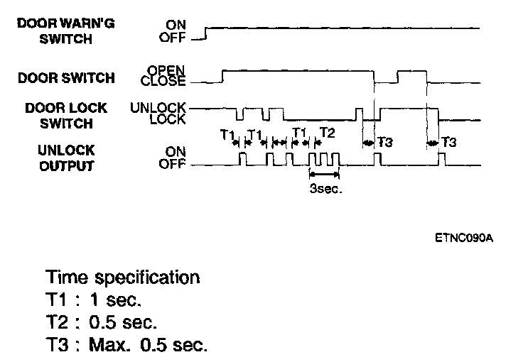 If during these pulses, the door lock knob becomes unlocked, stop the next pulse. If vehicle speed is greater than 3 km/h, ignition key reminder function is disabled.