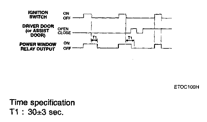 When Ignition 2 is turned off the power window feed is maintained on for 30 seconds and then turned off. If the driver door or assist door is opened during 30 sec interval the output shall be turned off immediately. If doors are open and ignition 2 is then turned on, the output shall be turned on immediately. If doors are open and ignition 2 is then turned off, the output shall be turned off immediately.