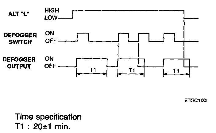 When the engine is running (Alternator"L"is high) a contact of the rear defog switch (momentary action) will switch the rear defog relay output on for 20 minutes duration.
