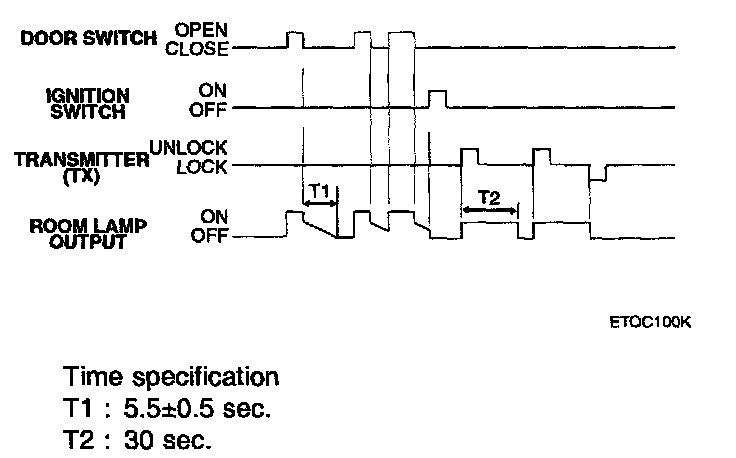 When transmitter (TX) unlock is received, room lamps are turned on in less than 0.5 second for maximum 30 seconds