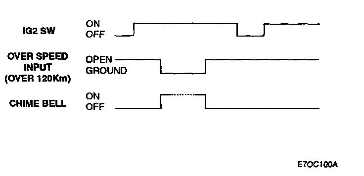 If the IGN2 is on, and the over speed input is grounded by cluster, chime is sounded until over speed input by cluster is opened.