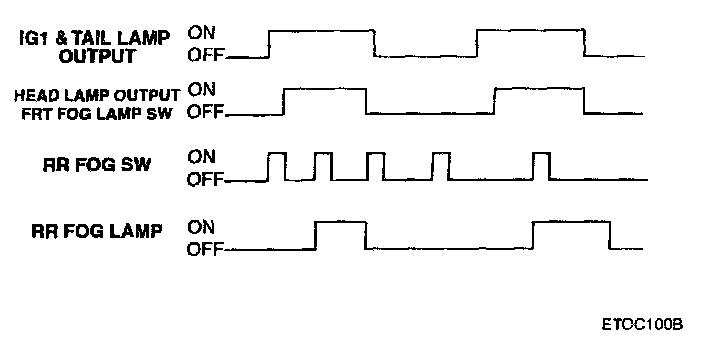 - Headlamps are on by switch or auto light or front fog switch is on, then if rear fog switch is contacted the rear fog lamps are turned on.