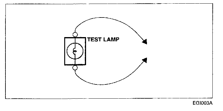 b. Connect the other lead of the test lamp or voltmeter to a selected test point(connector or terminal).