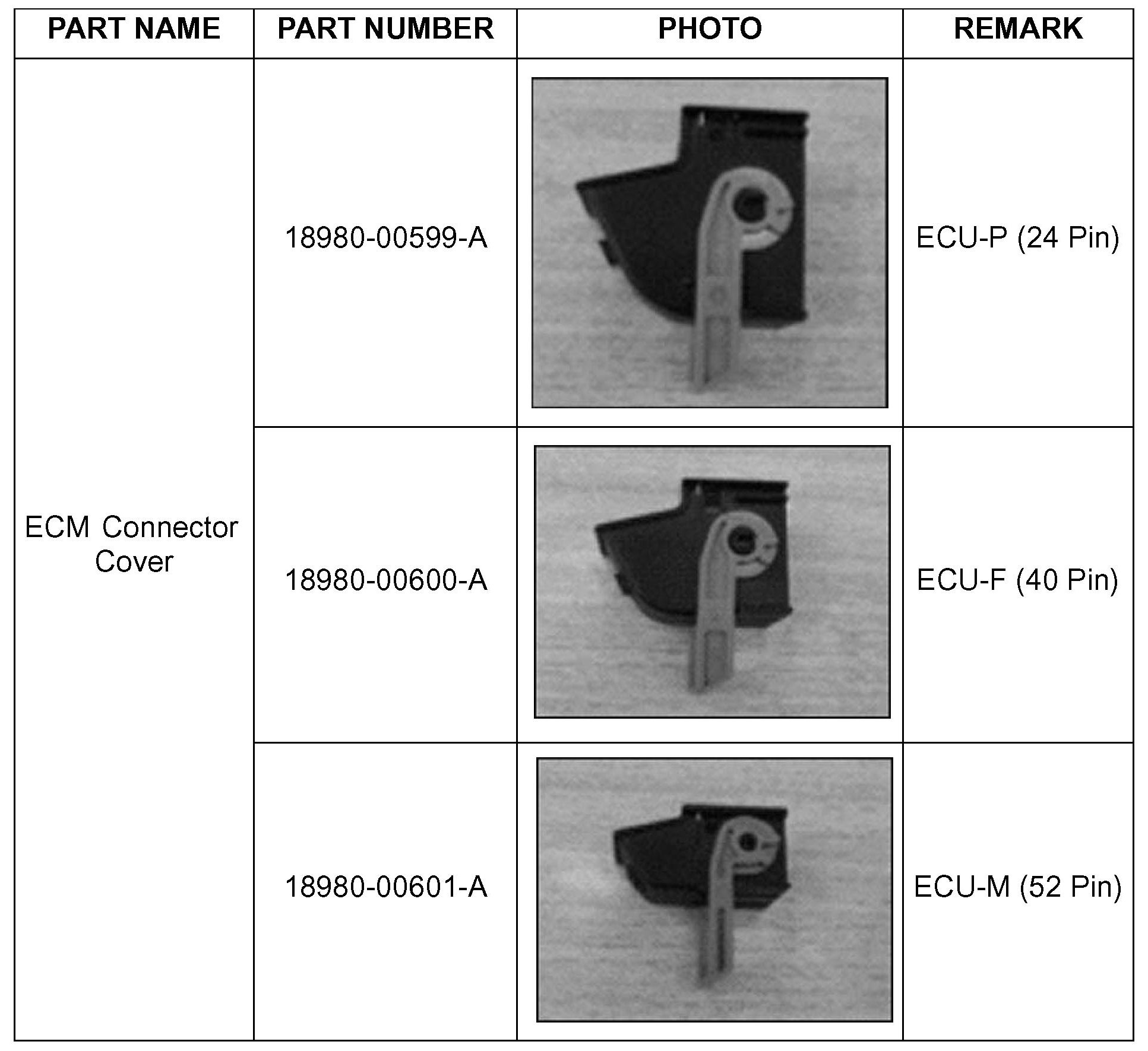 This bulletin provides service parts information for the ECM connector covers and how to replace damaged connector covers with corresponding new parts.