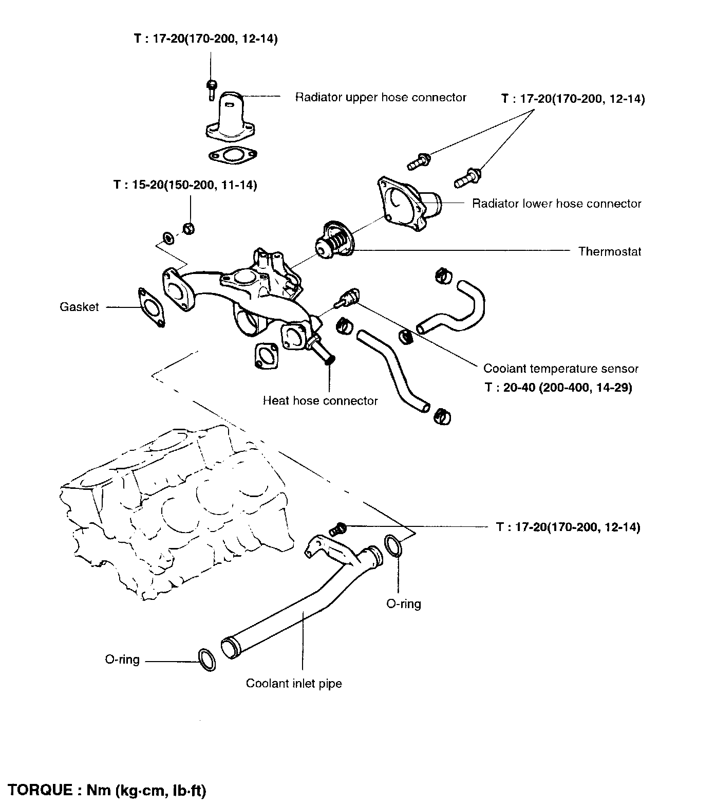 Engine coolant inlet fitting bolt 17 - 20 Nm (12 - 14 ft. lbs.)