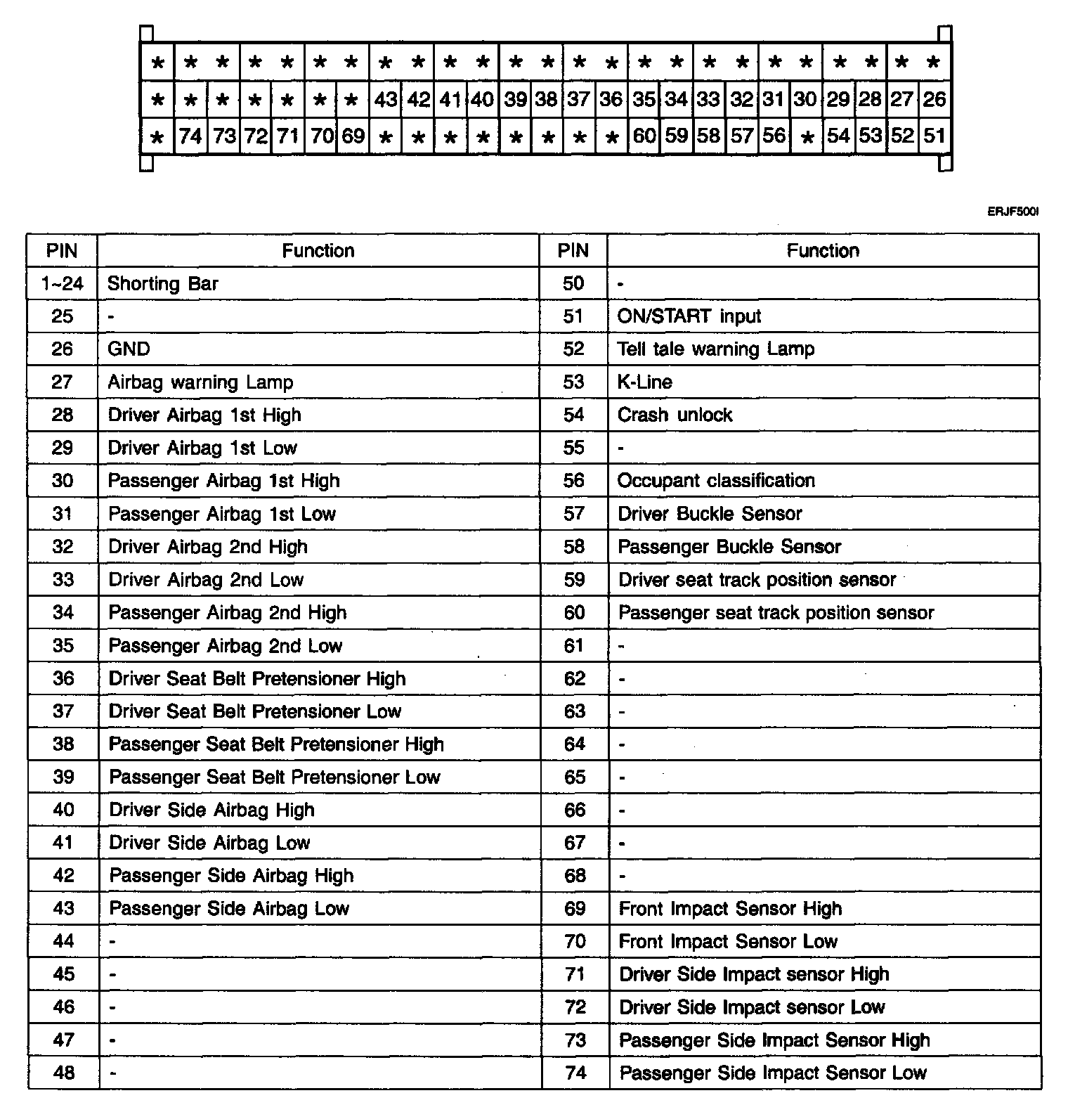 SRSCM Connector Terminal(USA) PIN No.1 to 74: