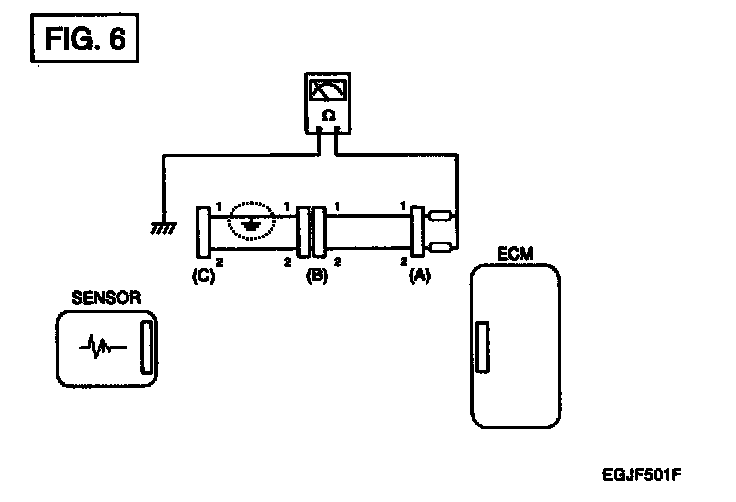 a. Disconnect connectors (A), (C) and measure for resistance between connector (A) and Chassis Ground as shown in [FIG. 6].
