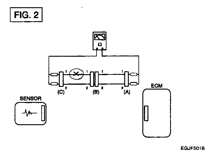a. Disconnect connectors (A), (C) and measure resistance between connector (A) and (C) as shown In [FIG. 2].