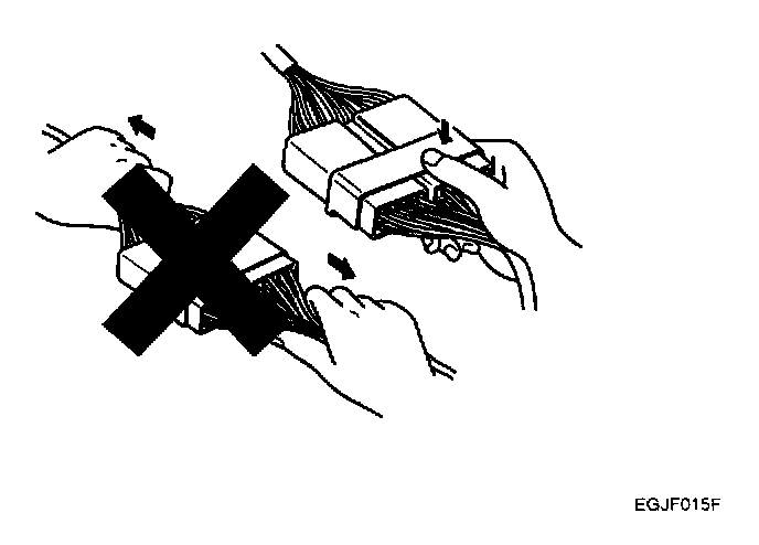 :Lightly shake the connector and wiring harness vertically and then horizontally.