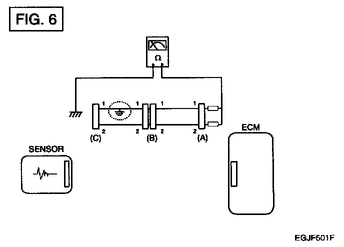 a. Disconnect connectors (A), (C) and measure for resistance between connector (A) and Chassis Ground as shown in [FIG. 6].