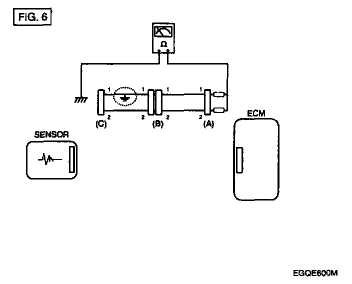 a. Disconnect connectors (A), (C) and measure for resistance between connector (A) and Chassis Ground as shown in [FIG. 6].