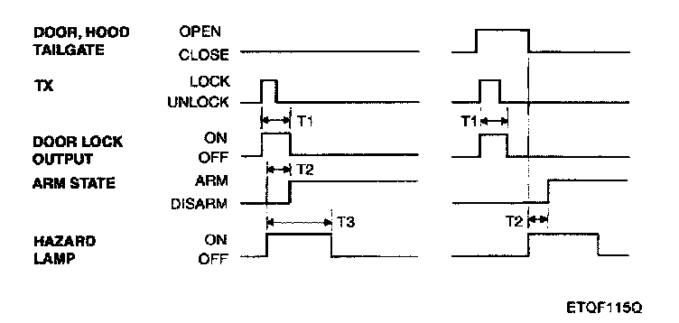 1. If the transmitter's PANIC alarm signal is detected, during T1, using the burglar alarm horn or HAZARD, the PANIC alarm is ON.