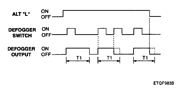 1. After ALT "L" ON, if the defogger is switched ON, the defogger output is ON for 20 minutes duration.