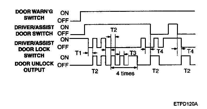 - In case the driver's door key UNLOCK switch is ON again during T1, the 4 door UNLOCK relay is ON for T3.