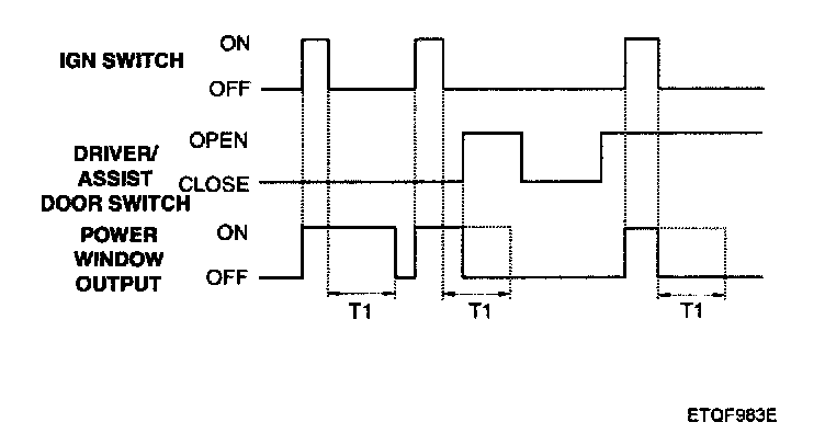 2. When the ignition is switched OFF, the power window output is maintained ON for 30 seconds and then turned OFF.