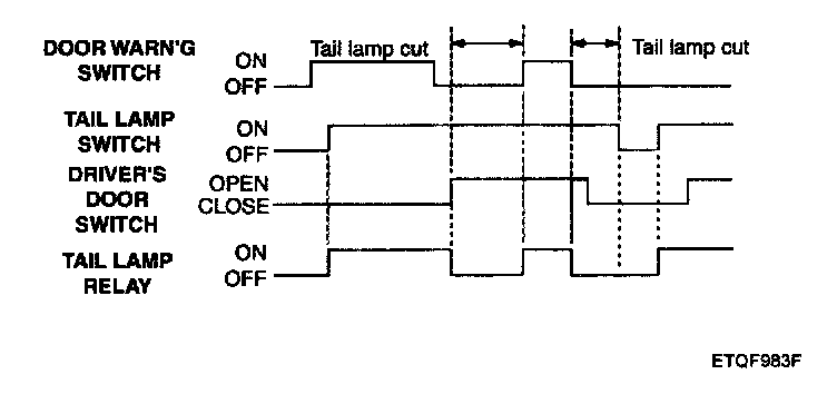 2. With the ignition switched ON, if the driver's door is opened and the ignition is switched OFF, the tail lamp should be automatically OFF.