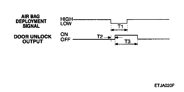 1. With the ignition turned ON, if the air bag is deployed, a crash signal is received and send an UNLOCK output to all doors UNLOCK.