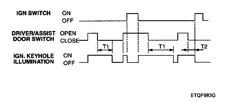 1. Ignition key hole illumination is turned ON when driver door or assist door is opened with ignition switch OFF.