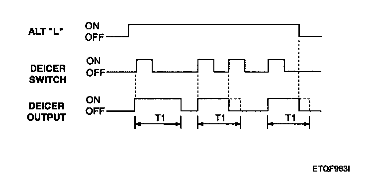 1. After ALT "L" ON, the windshield deicer is switched ON, the deicer relay output is ON for 20 minutes duration.