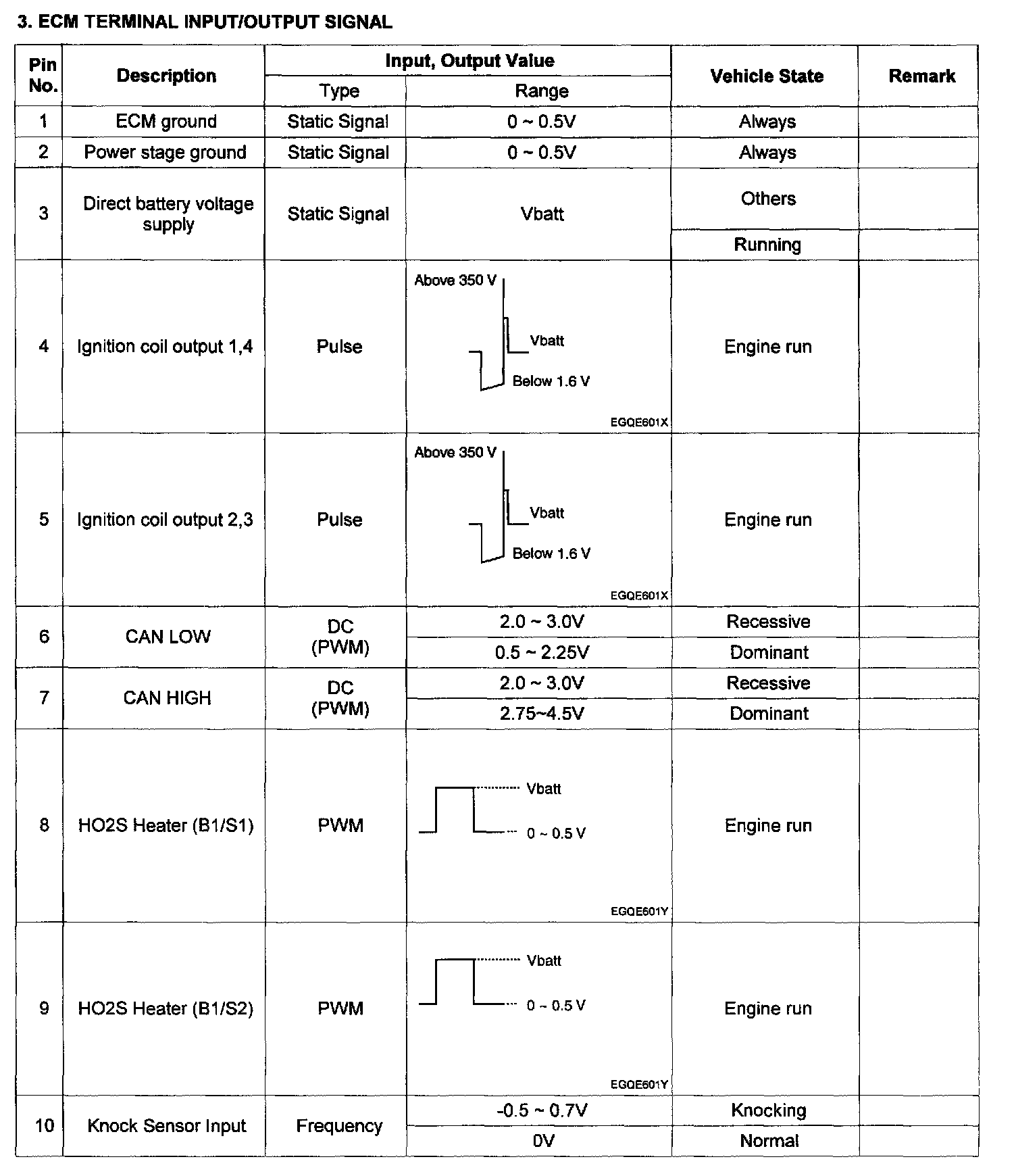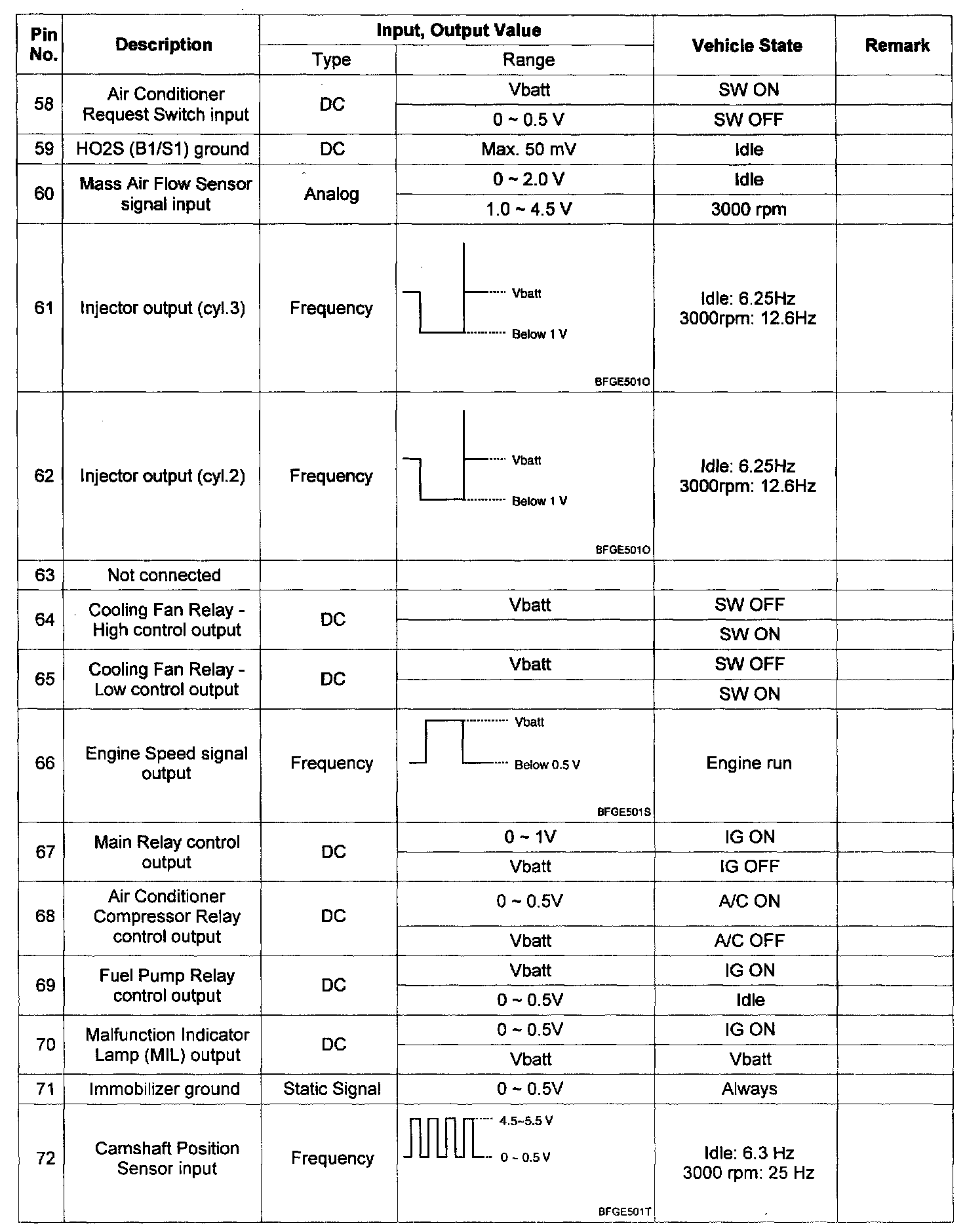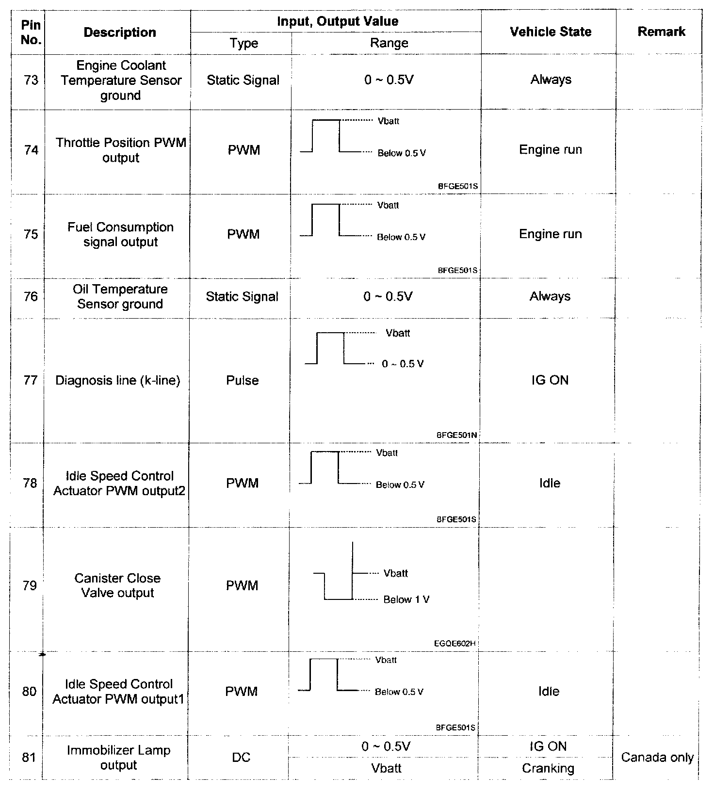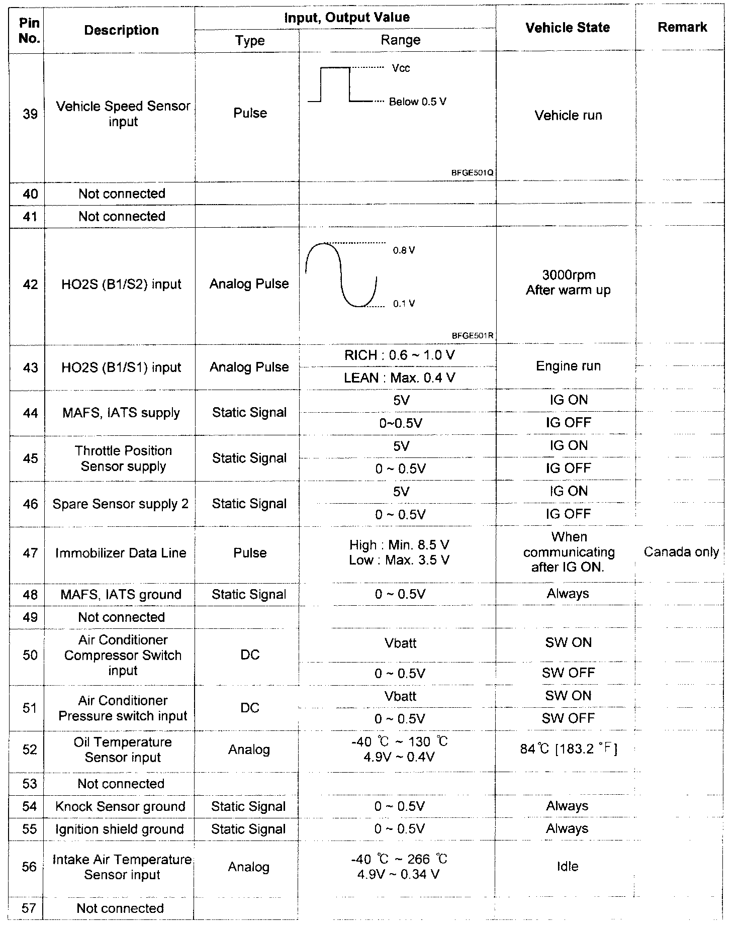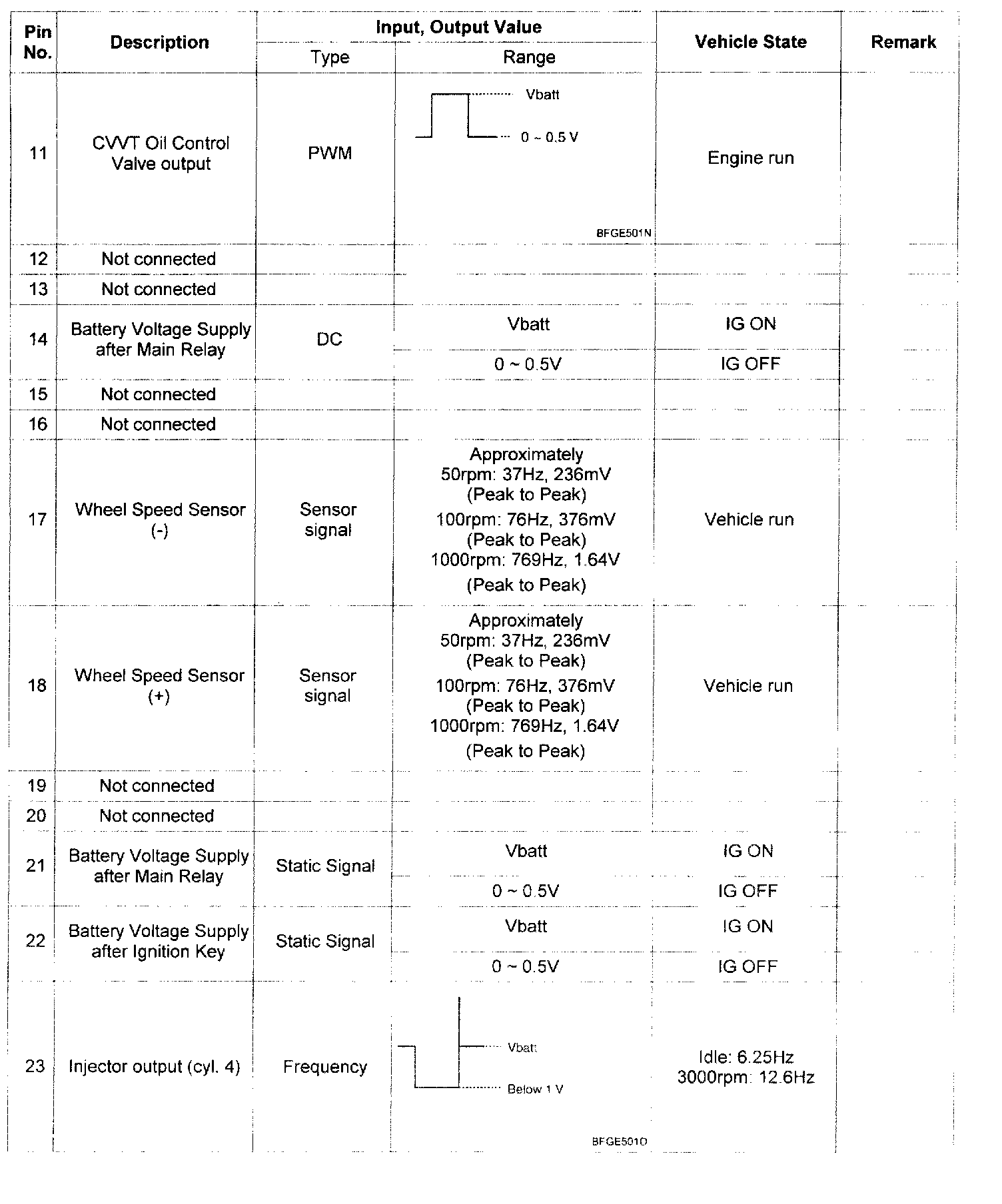 Pinout Values and Diagnostic Parameters