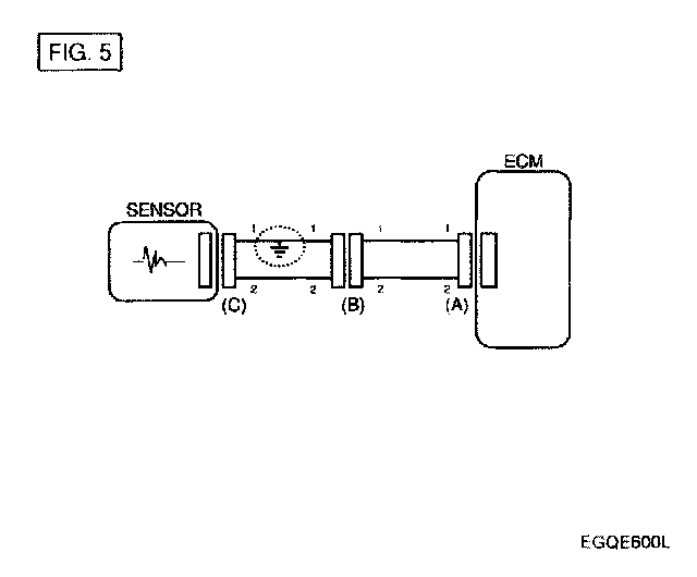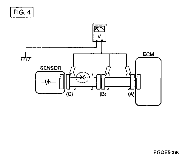 a. With each connector still connected, measure the voltage between the chassis ground and terminal 1 of each connectors (A), (B) and (C) as shown in [FIG. 4].