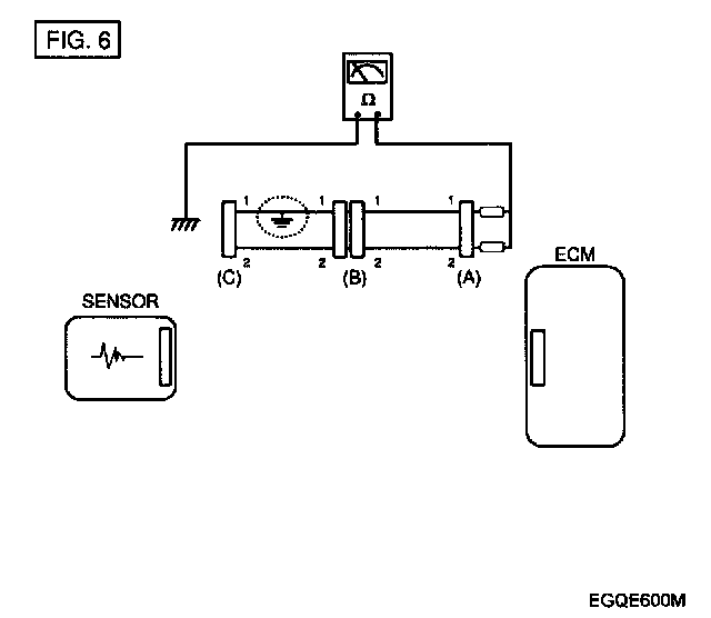 a. Disconnect connectors (A), (C) and measure for resistance between connector (A) and Chassis Ground as shown in [FIG. 6].