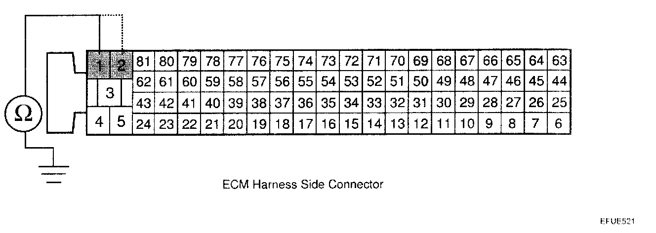 2. TEST ECM CONNECTOR: Disconnect the ECM connector and visually check the ground terminals on ECM side and harness side for bent pins or poor contact pressure. If problem is found, repair it.