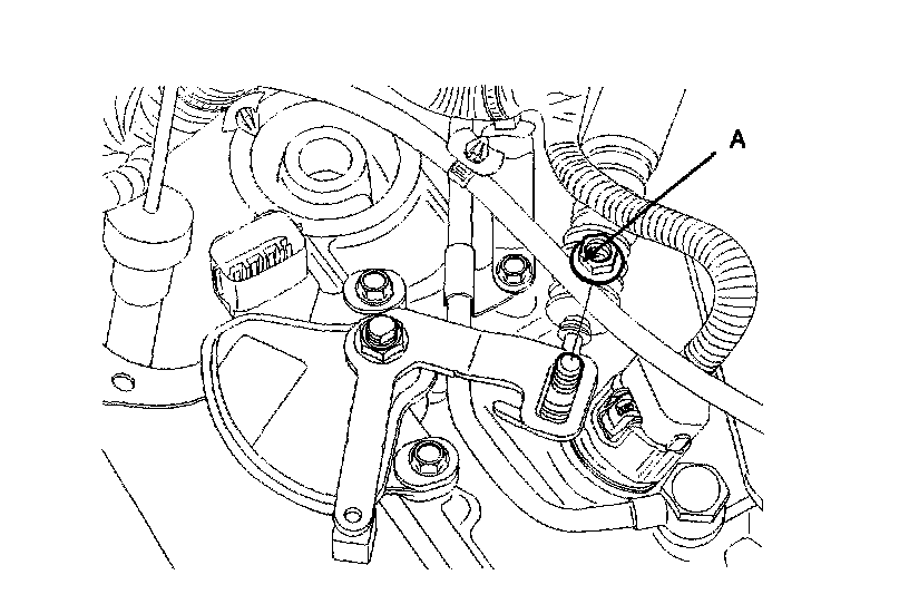 7. Remove the shift cable mounting nut (A).