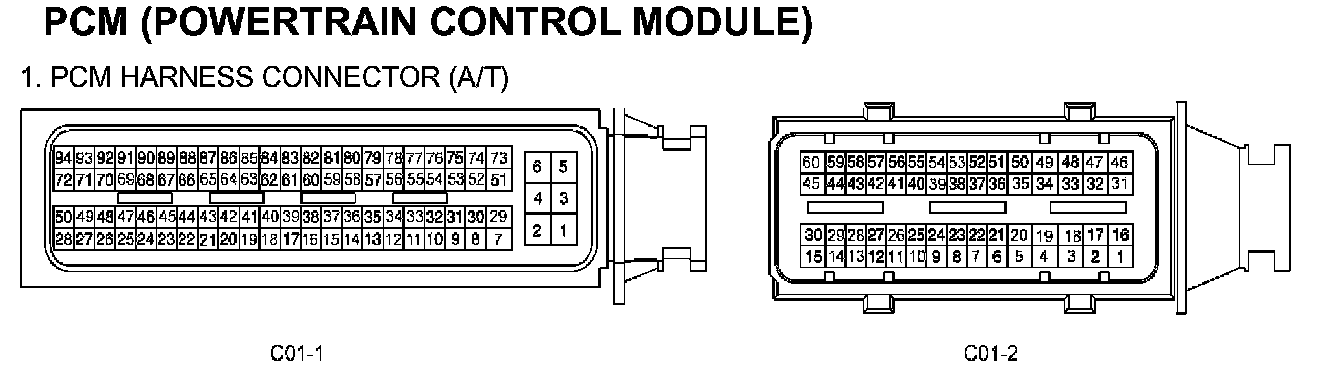 PCM Harness Connector (A/T) C01-1 And C01-2: