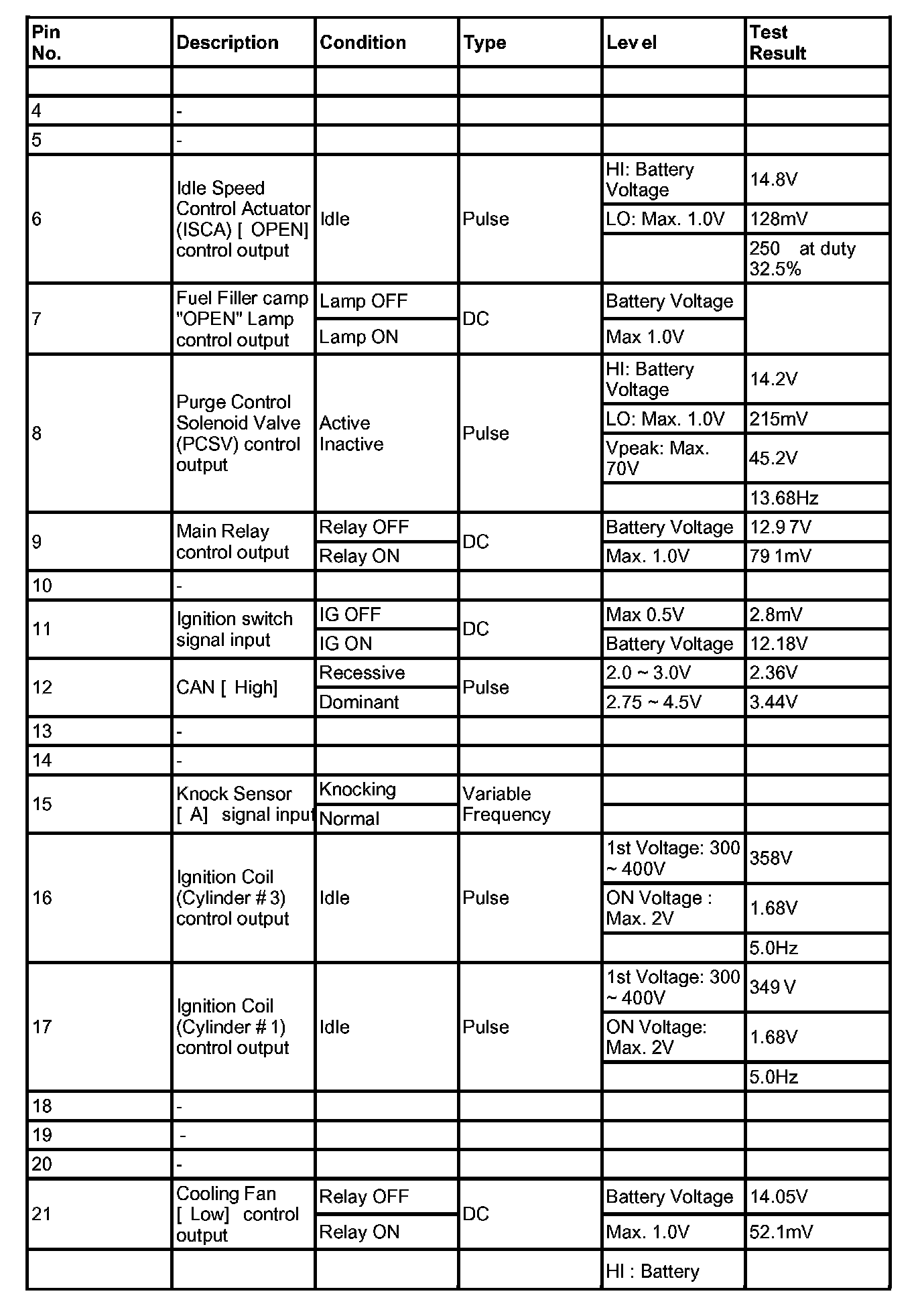 PCM TERMINAL IN/OUT SIGNAL (A/T) - CONNECTOR [C01-1]