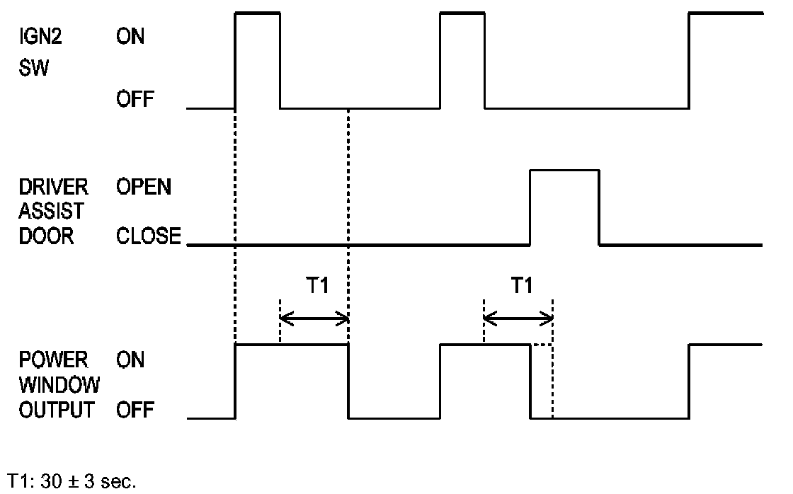 a. When the ignition is switched OFF, power window output remains ON for 30 seconds and then turns OFF.