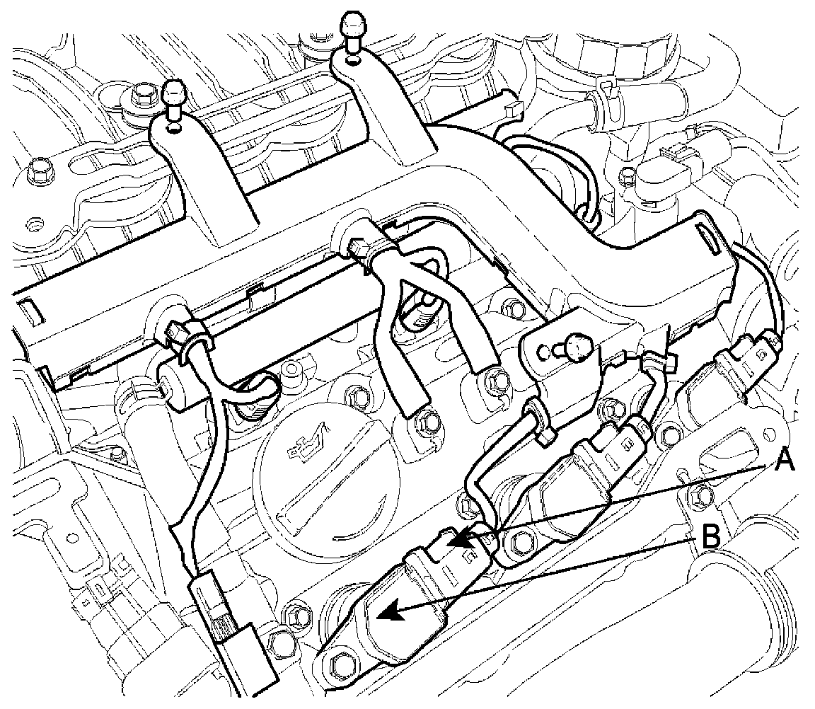 NOTE: When removing the ignition coil connector, pull the lock pin (A) and push the clip (B).