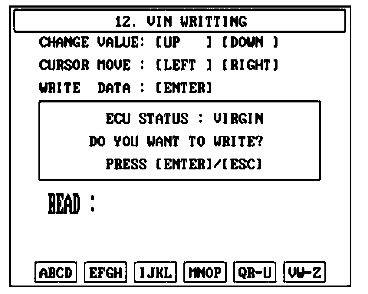 CAUTION: The programmed VIN cannot be changed. When writing the VIN, confirm the VIN carefully