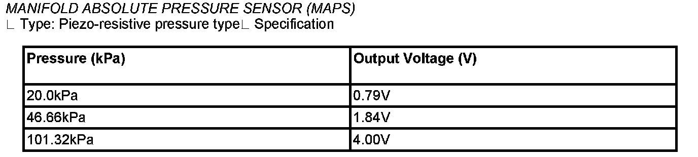 Manifold Absolute Pressure Sensor (MAPS) - Specification: