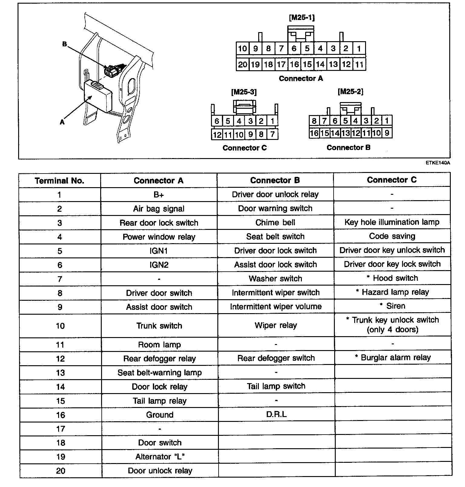 1. Disconnect the wire connector(B) from the ETACS module(A).