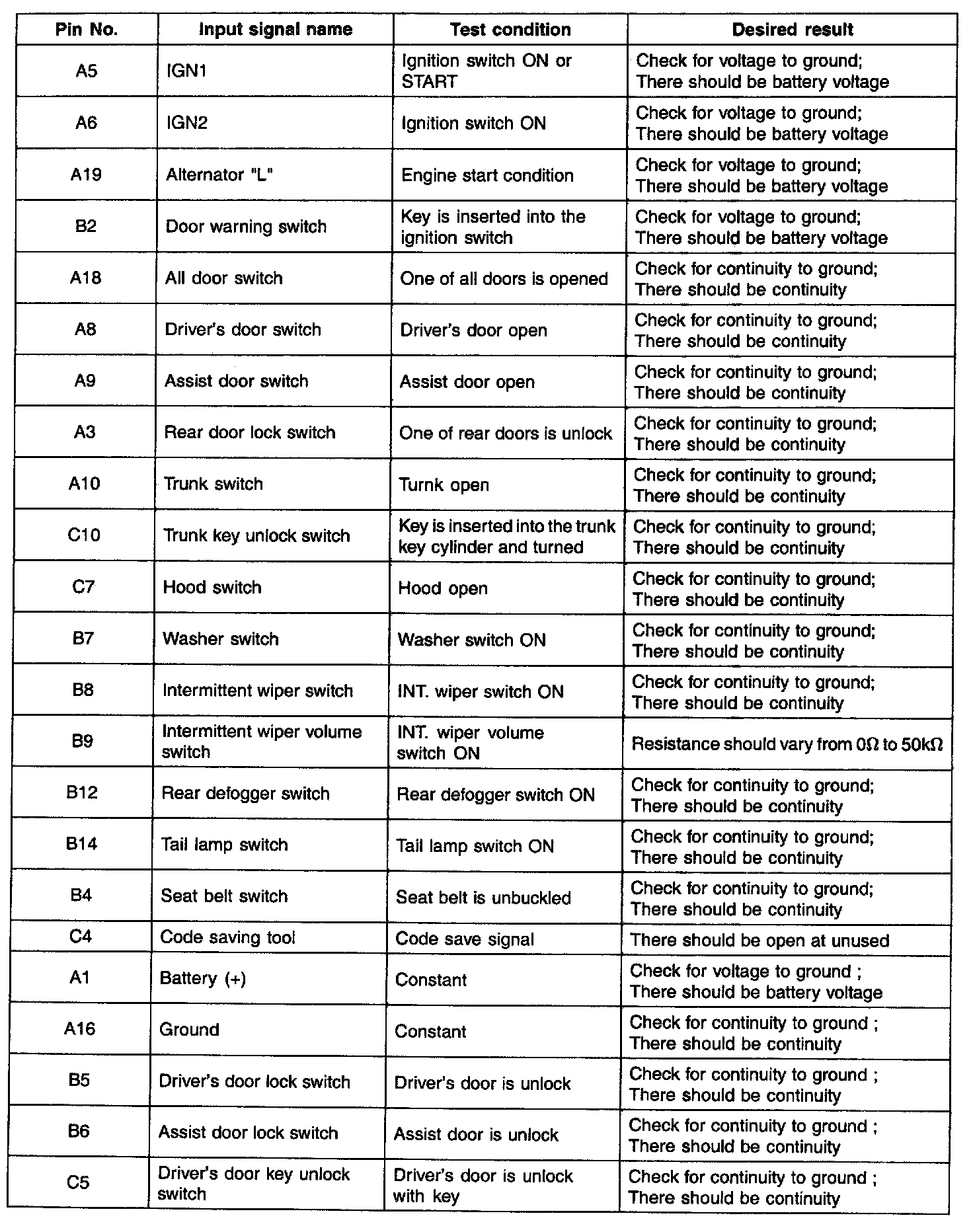 ETACS MODULE INPUT SIGNAL TEST