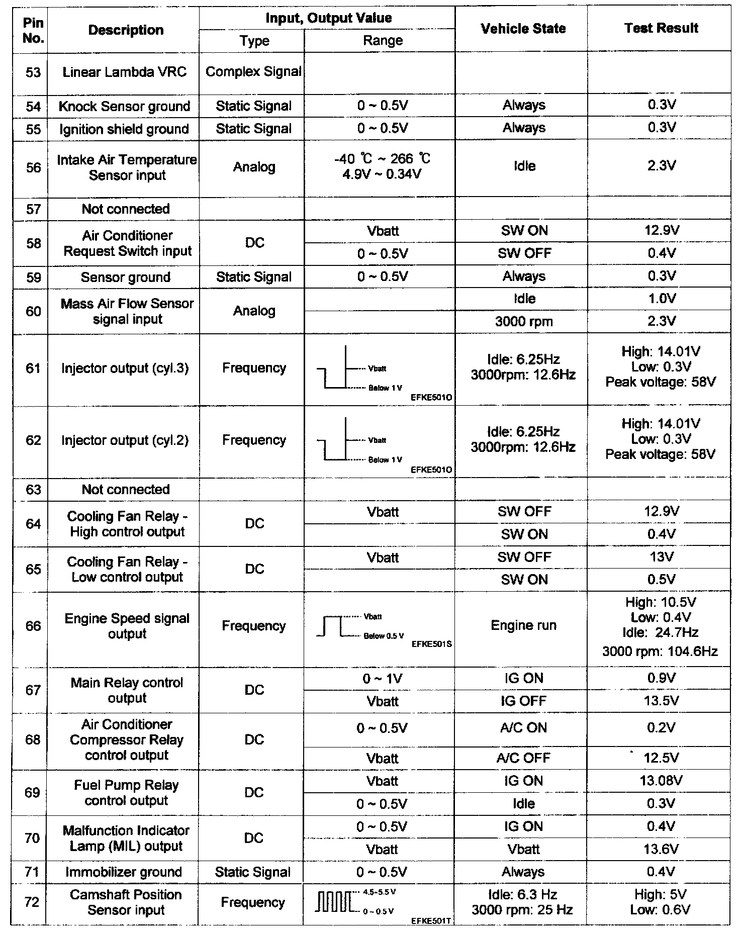 Pinout Values and Diagnostic Parameters