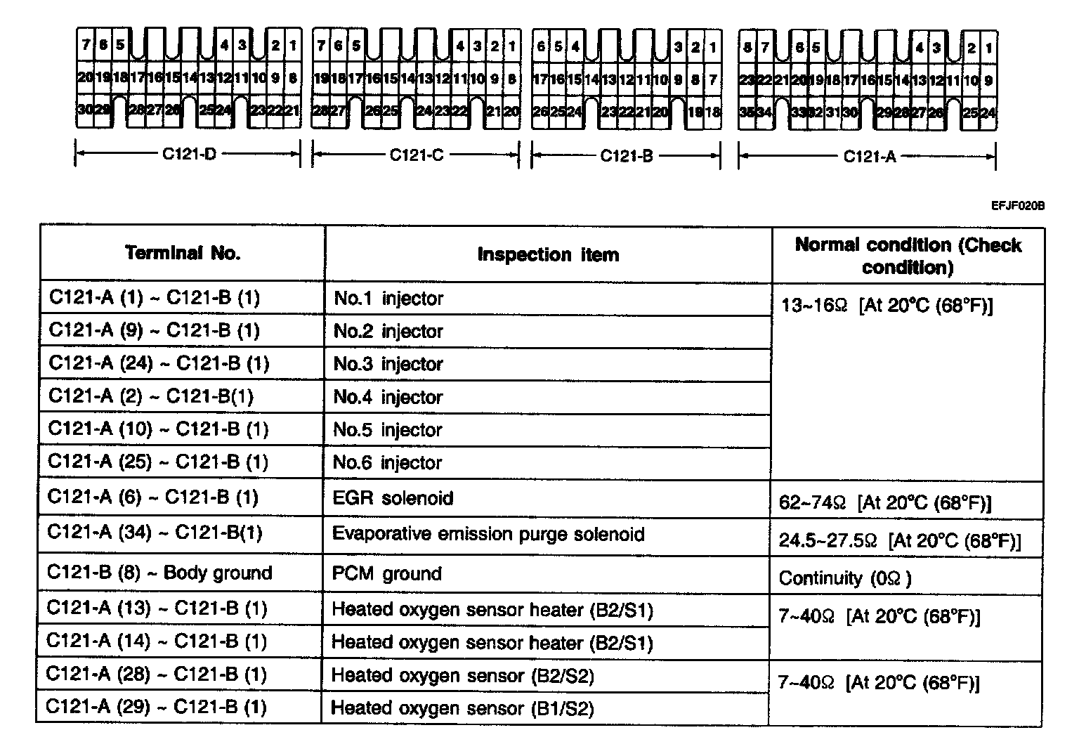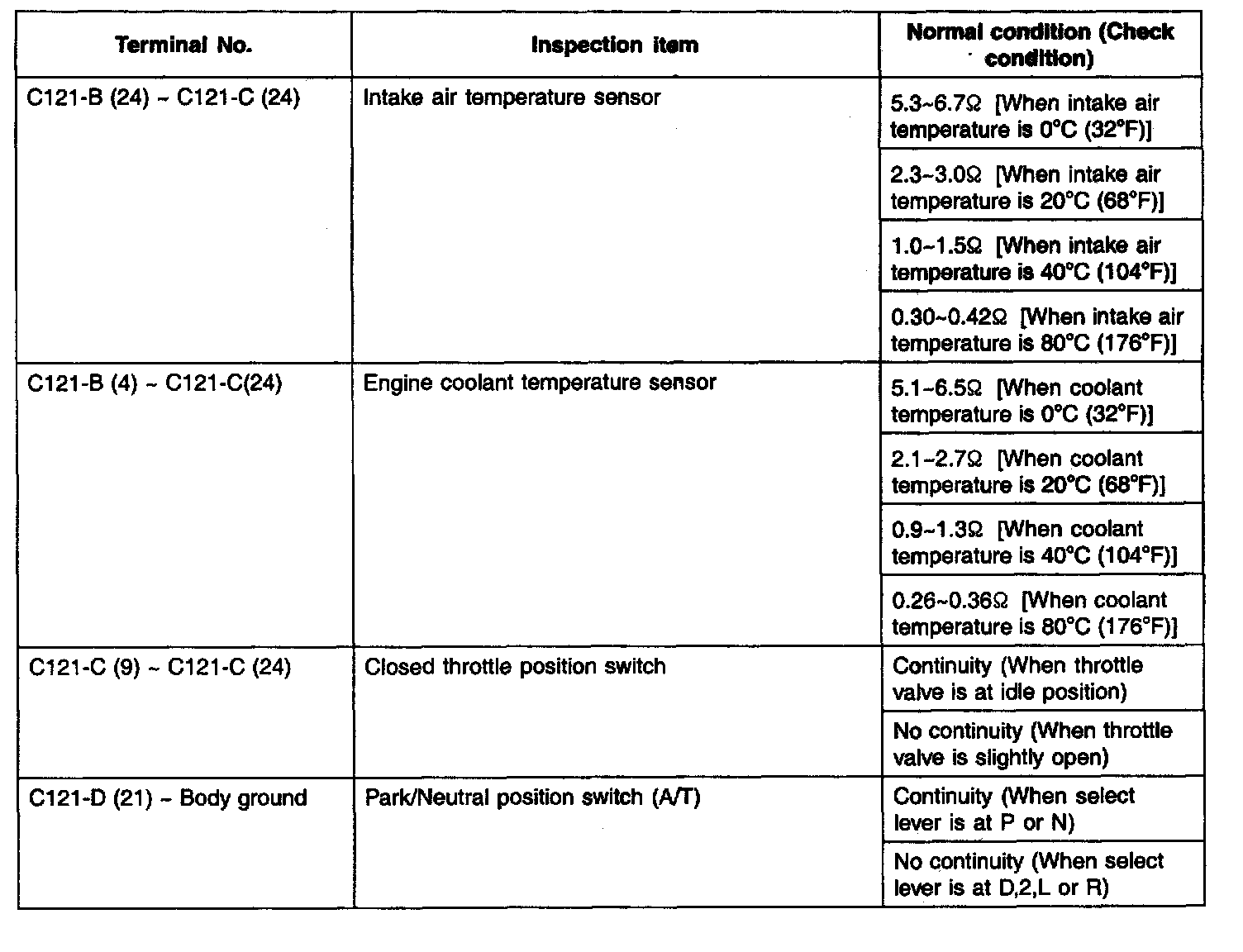 3. If the ohmmeter shows any deviation from the normal condition, check the corresponding sensor, actuator and related electrical wiring, and then repair or replace.