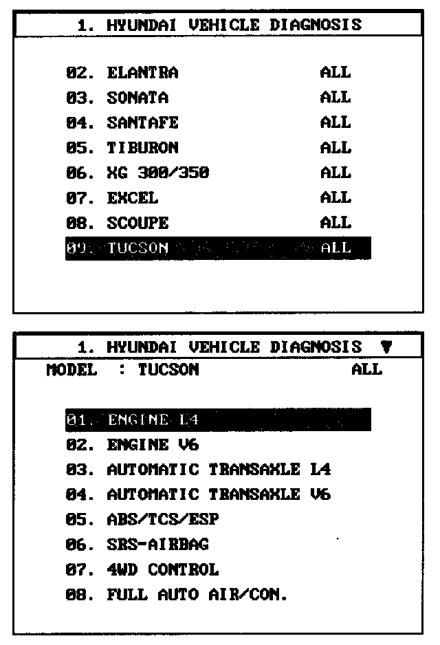 1. Select "Vehicle" and "Engine" (For example, TUCSON 2.0L L4).